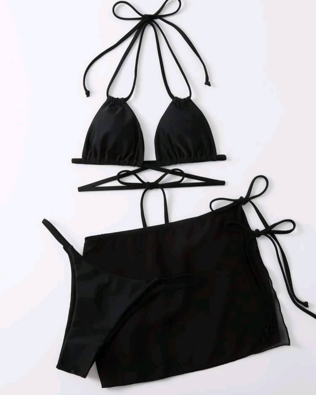 Bikini 2 piezas + salida de baño traslucida de amarrar, copa prehormada, herrajes metalicos, tipo tanga ajustable